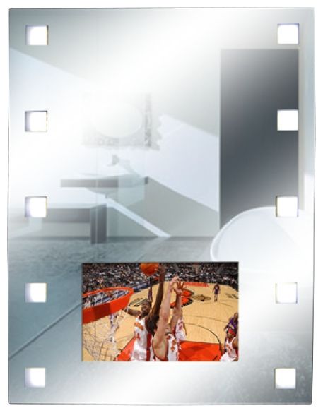 TV in the mirror with LED lamps on the sides of the mirror; floating remote control; LED lights turn on and off with remote control