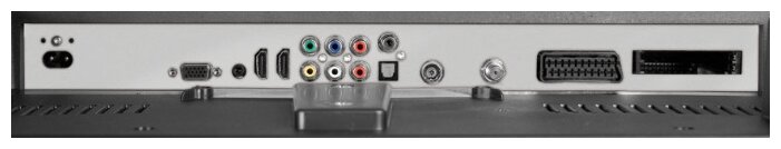 AV-in, SCART, USB Type-A, HDMI-in, HDMI-in x 2, VGA-in, digital optical audio-out, headphone-out, composite video-in, component video-in, CI slot