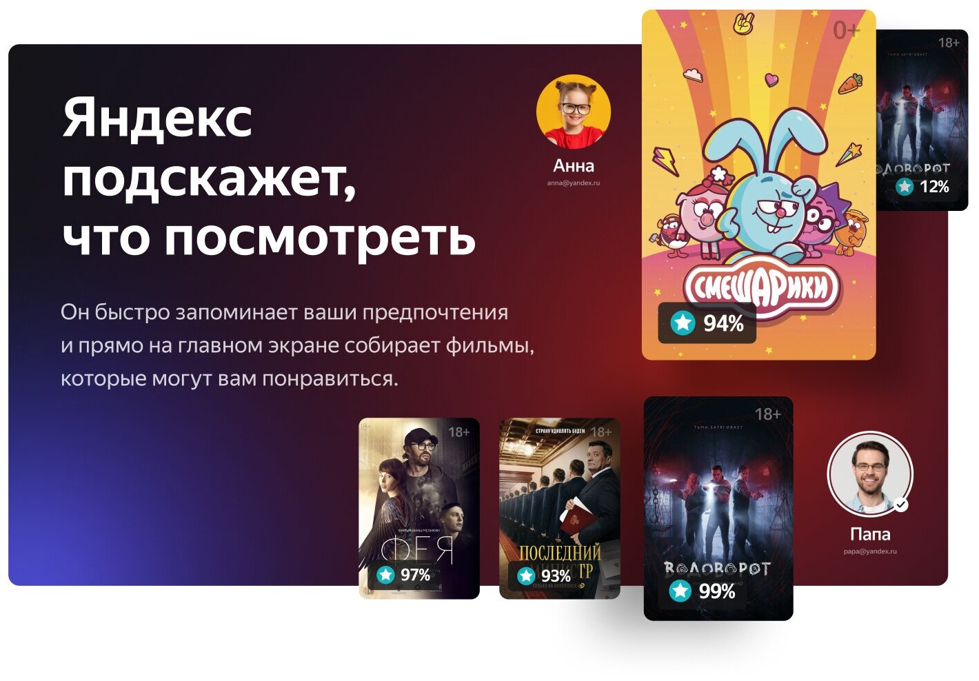 IPTV + TV in one application; voice control with search; system optimization; Kinopoisk HD; Yandex Plus subscription for 3 months.