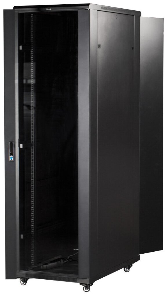 Rack mounting width: 19", height in units: 42 U, maximum load: 800 kg, installation: floor, equipment: side panels, mounting kit, protection class: IP20
