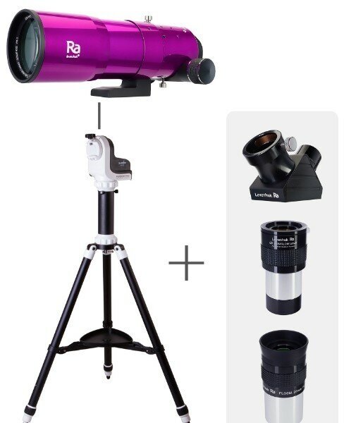Levenhuk Ra R72 ED Doublet OTA Sky-Watcher AZ-GTi mount Star Adventurer aluminum tripod Extension tube for mounting long focal length telescope tubes Accessory tray SNAP port cable for Canon cameras Diagonal mirror
