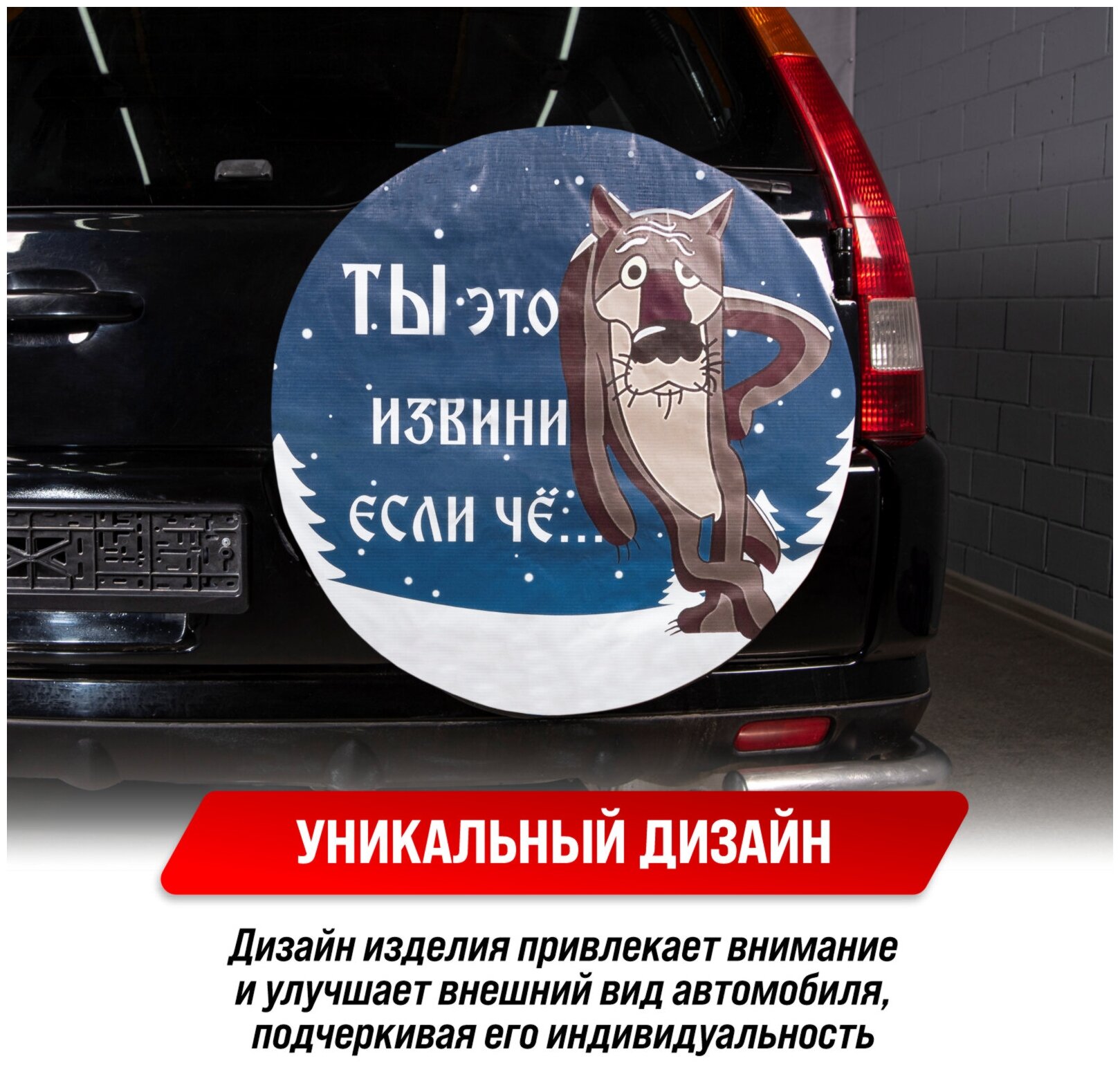 Spare wheel cover Wolf Excuse me... R16,17 diameter 77cm SKYWAY eco-leather polyester