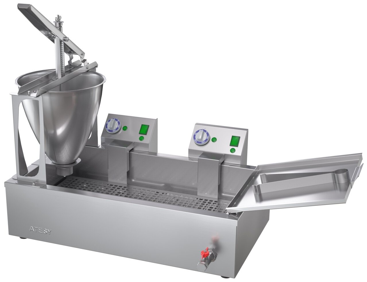 Type: donut maker, container volume: 23 l, number of containers: 1, container material: stainless steel steel, maximum operating temperature: 190 °C, power consumption: 7.80 kW, drain cock, installation: tabletop
