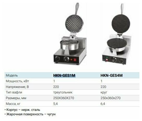 Type: waffle iron, control: mechanical, power consumption: 1 kW, installation: tabletop