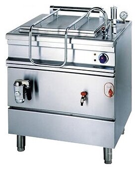 Round container, diameter 500 mm, depth 470 mm; outlet valve 6/4"; faucet for hot and cold water; water connection: Ø 10 mm; admissible water pressure: 0.5-3 bar; type of heating: steam jacket; maximum