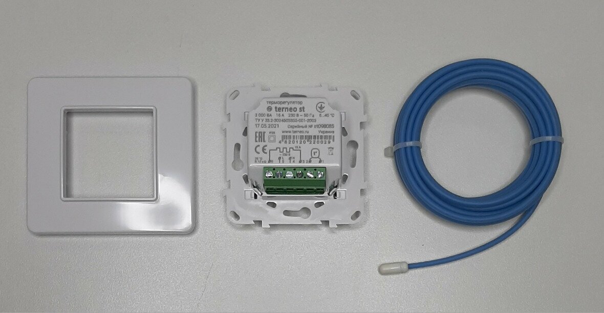 Type of control: electronic, maximum load: 3000 W, minimum temperature: 5 °C, maximum temperature: 40 °C, air temperature control, underfloor heating temperature control, underfloor heating sensor: in
