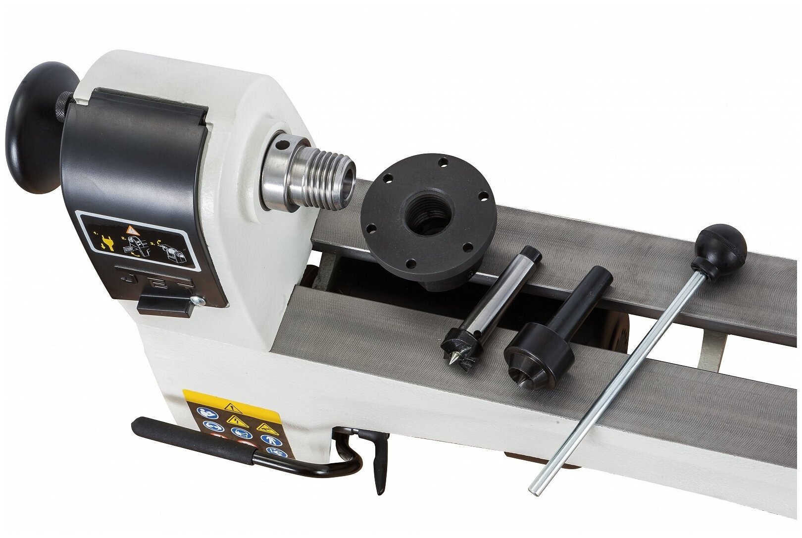 Machine tool, tool rest 150 mm wide for turning tools, faceplate 76 mm in diameter, four-tooth drive center MK-2, rotating thrust center, knockout rod