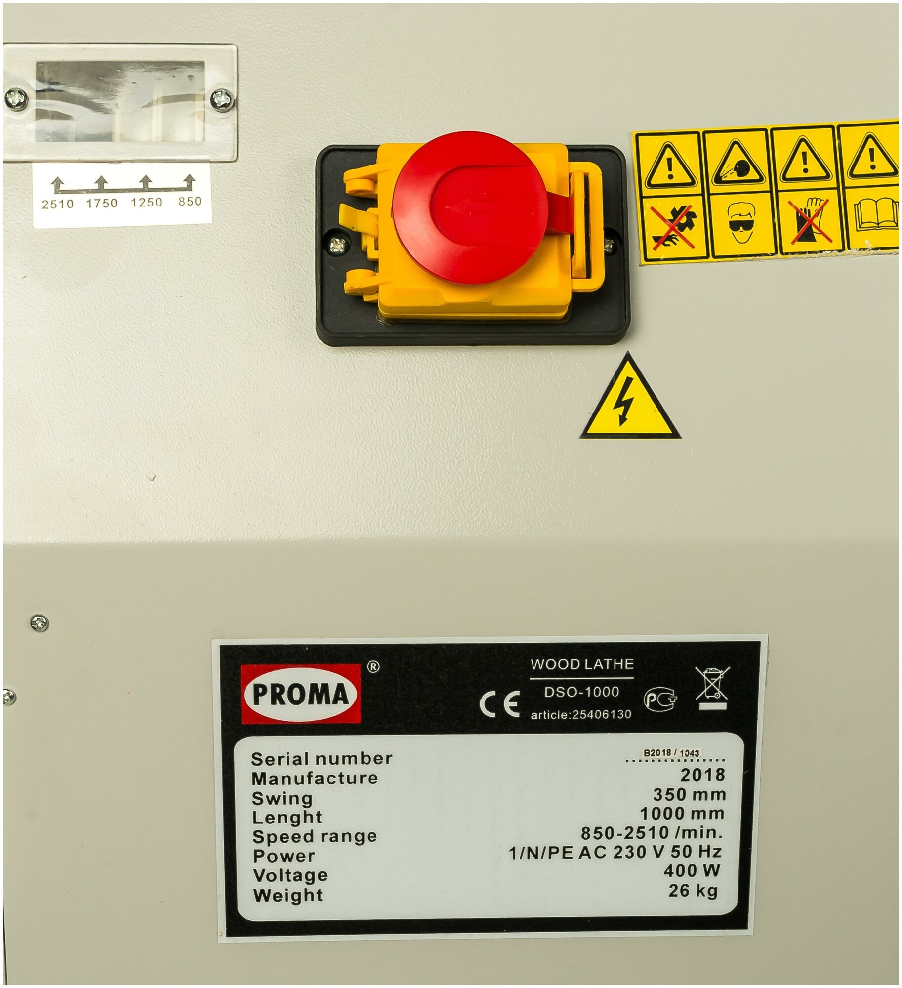 Machine, protection cover and headstock, faceplate, for control - rear quill helm, hexagon socket wrench 3 mm, special flat key 19x27, instruction manual