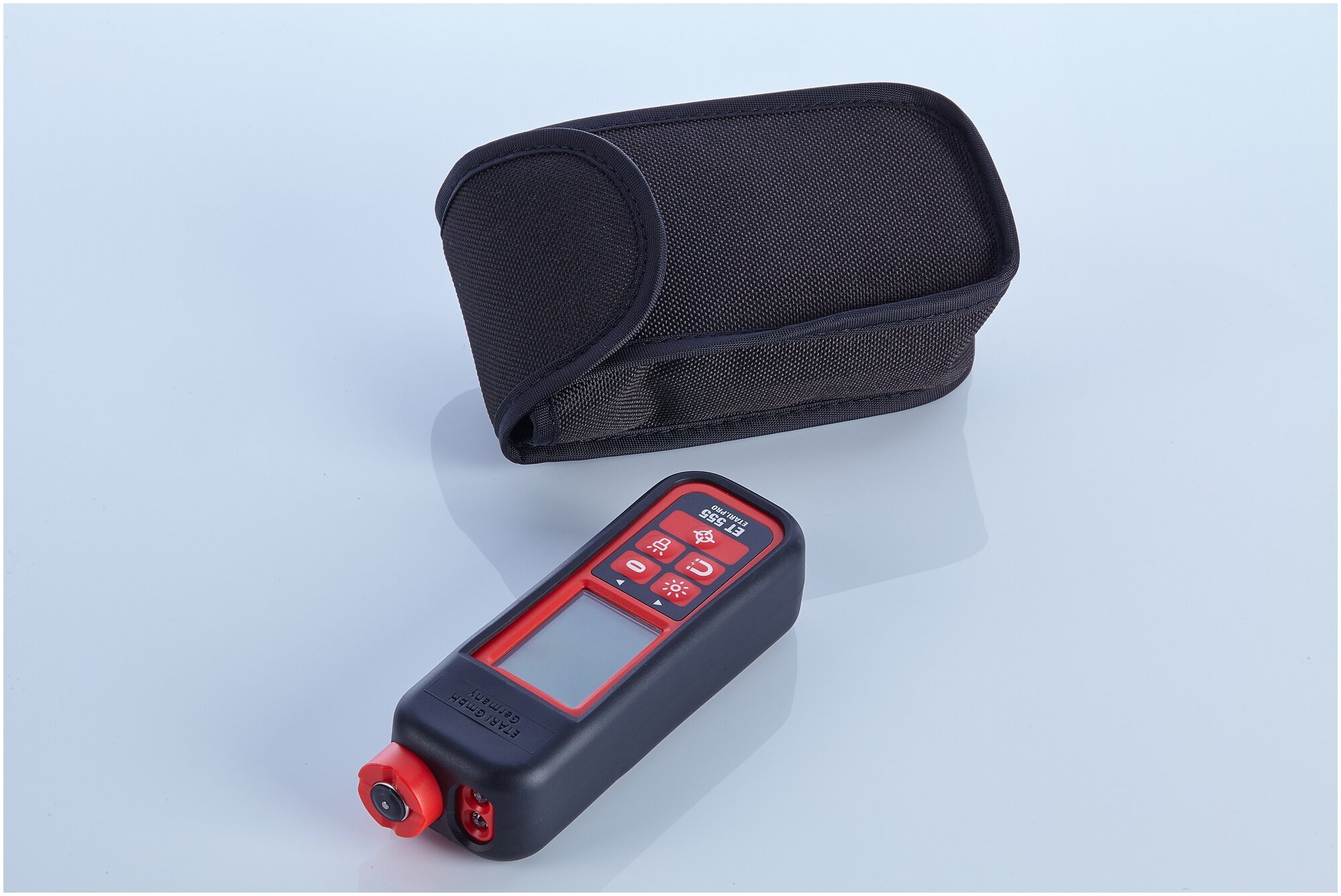 Complete set: Thickness gauge Etari ET-555 PRO, rubber case, rag bag, batteries, calibration set 2 washers + 1 film, manual with warranty card