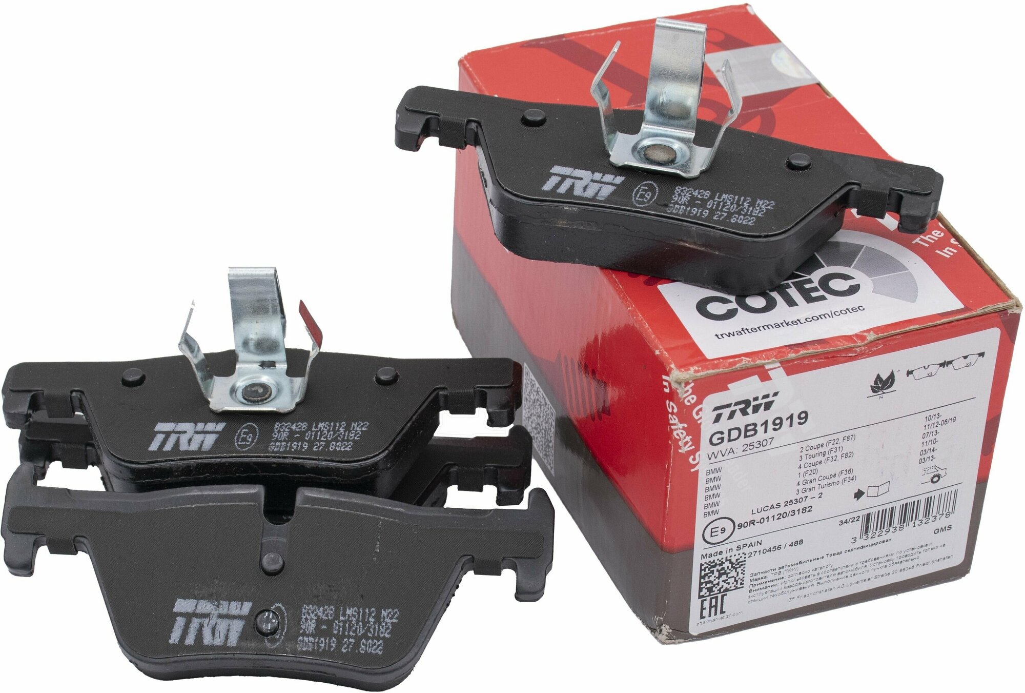 Type: disc brake pads, car brand: BMW, car model: BMW 1 series, BMW 2 series, BMW 3 series, BMW 4 series, function: rear, set: 4, features: The product is certified and approved