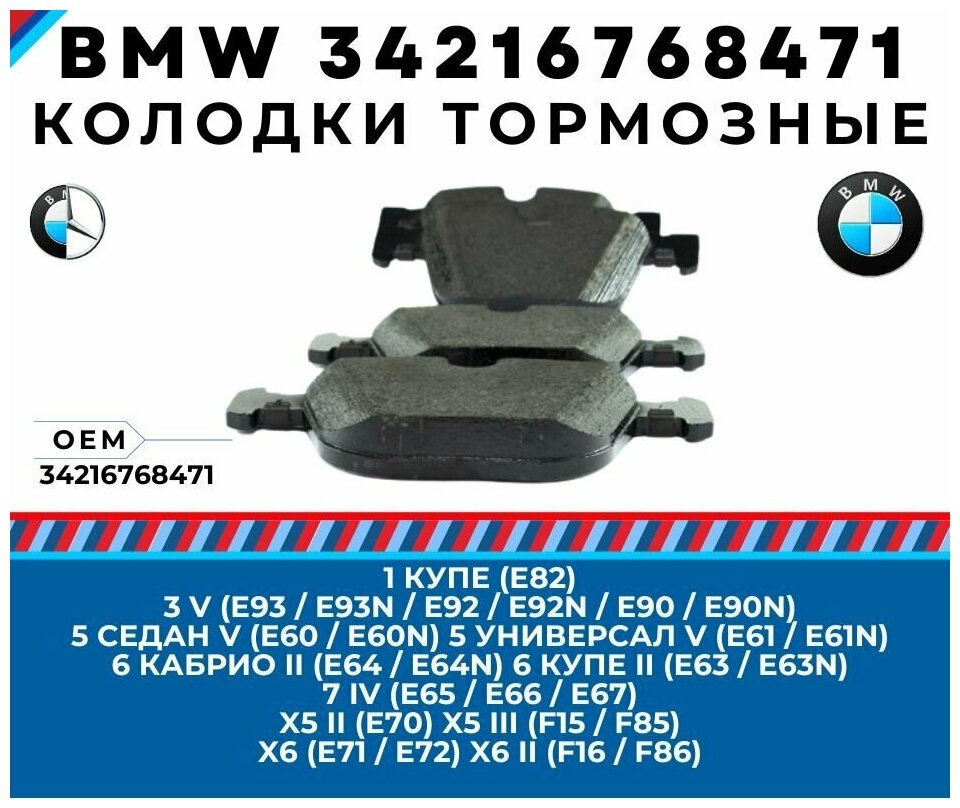 Type: Disc Brake Pads, Vehicle Make: BMW, Vehicle Model: BMW 1 series, BMW 5 series, BMW 7 series, BMW X5, BMW X6, Function: Rear, Relevant OE Codes: BMW 34216768471, Included: 4, Features: wear sensor preparation