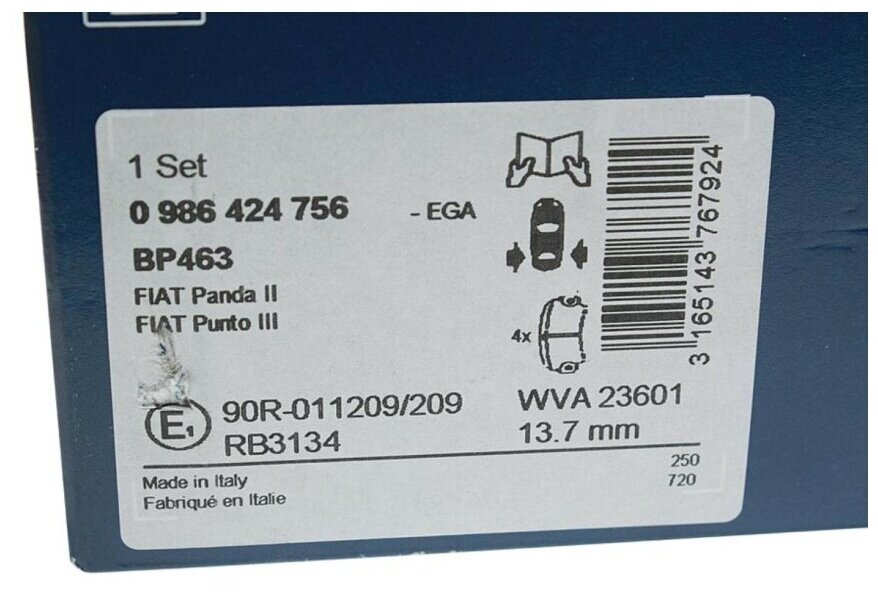 Type: disc brake pads, car brand: Fiat, LADA VAZ, car model: Fiat 500, Fiat Punto, LADA Kalina, LADA Vesta, purpose: rear, OE codes: 0986424756, set: 4