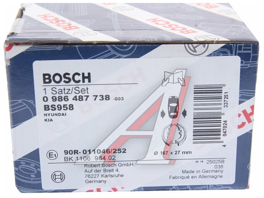 Parking brake shoes Bosch 0986487738 for Hyundai Tucson, Kia Sportage, Hyundai Santa Fe 4 pcs.