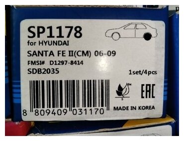 Type: disc brake pads, car brand: Hyundai, Kia, car model: Hyundai Santa Fe, Hyundai Starex, Kia Sorento, function: rear, set: 4