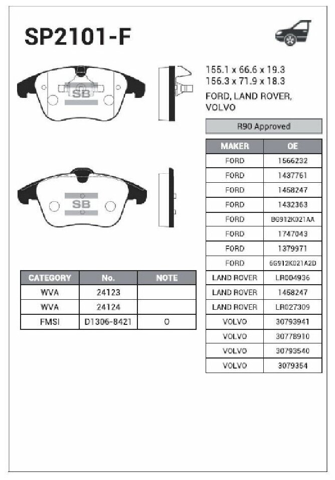 Type: disc brake pads, car make: Ford, Mazda, Volvo, car model: Ford Galaxy, Ford Mondeo, Ford S-Max, LADA 2101, purpose: front, set: 4