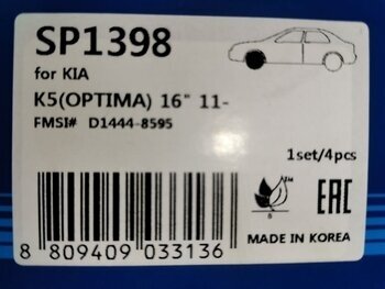 Type: disc brake pads, car brand: Hyundai, Kia, car model: Ferrari 812, Hyundai Sonata, Kia Optima, function: front, set: 4