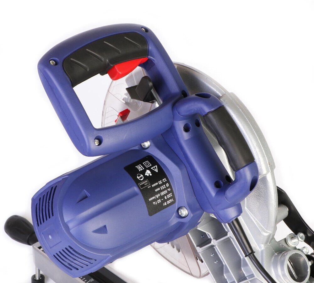Type: miter saw, laser marker, disc diameter: 255 mm, Power W: 1600, cutting depth 90°: 78 mm, cutting width 90°: 305 mm, with pull, power supply: from the mains, functions: Safety lock, Safety lock spindle