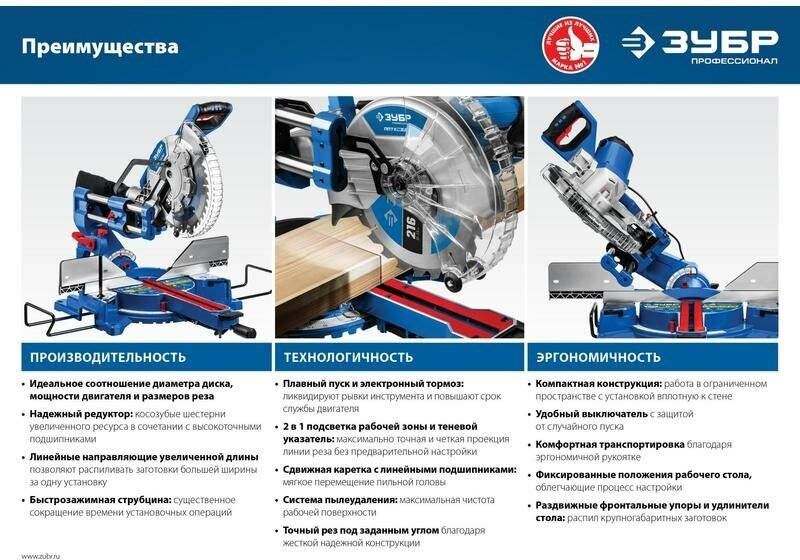 Description: Type: miter saw, laser marker, disc diameter: 216 mm, Power W: 1500, cutting depth 90°: 65 mm, cutting width 90°: 305 mm, with pull, power supply: from the mains, design features: the ability to connect a vacuum cleaner, laser �