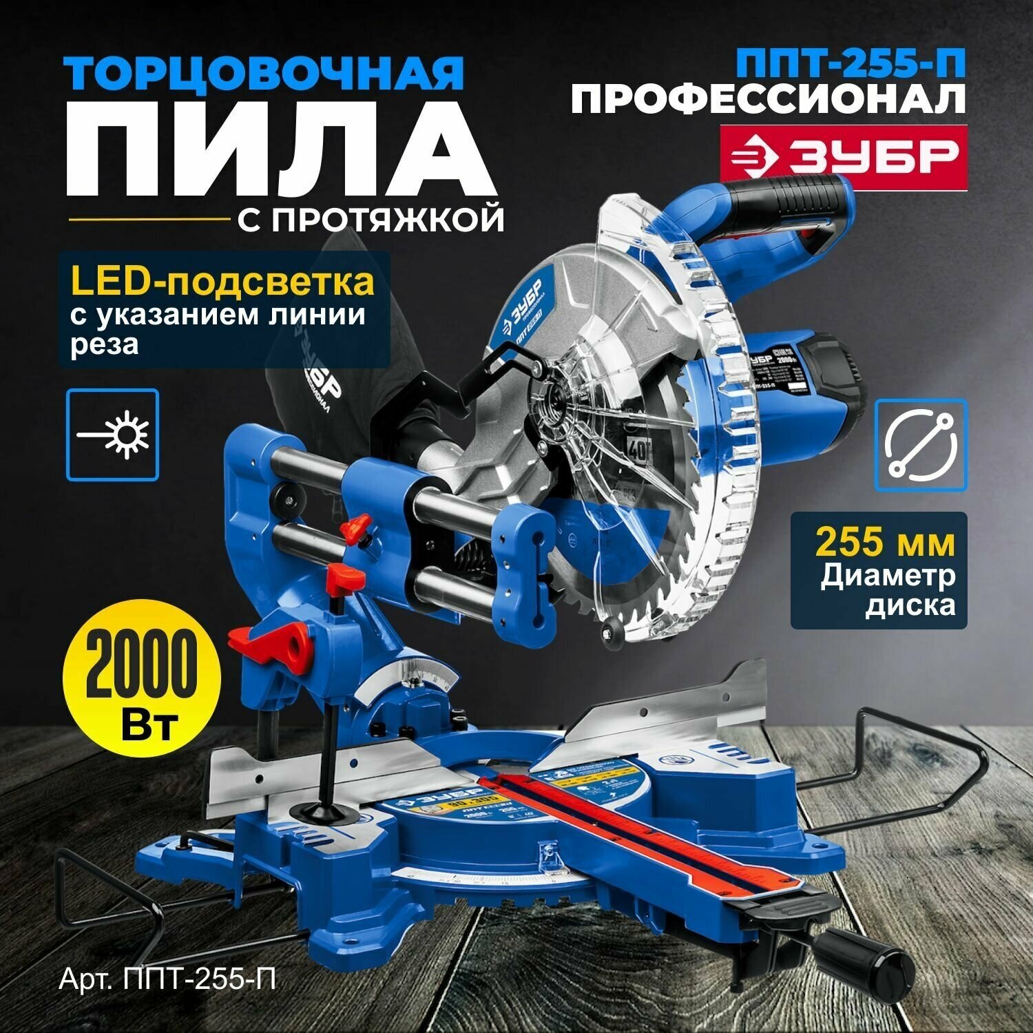Type: miter saw, laser marker, disc diameter: 216 mm, Power W: 1500, cutting depth 90°: 65 mm, cutting width 90°: 305 mm, with pull, power supply: from the mains, design features: the ability to connect a vacuum cleaner, laser �