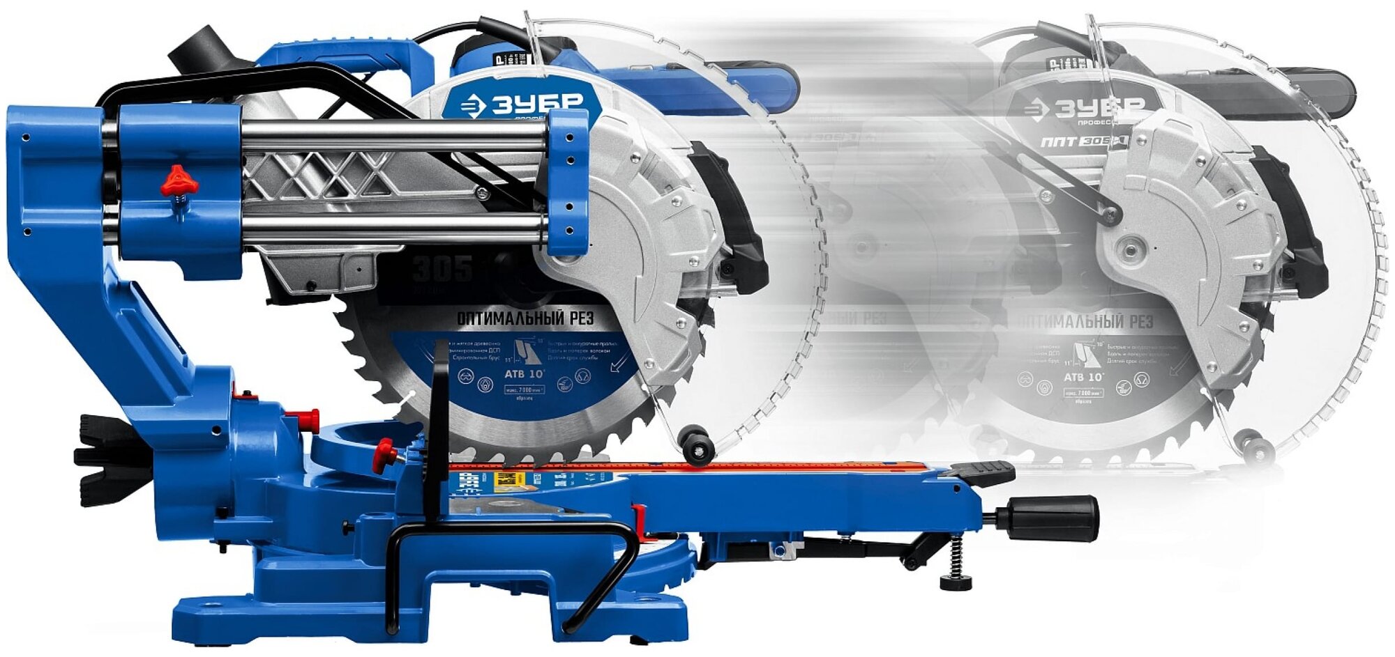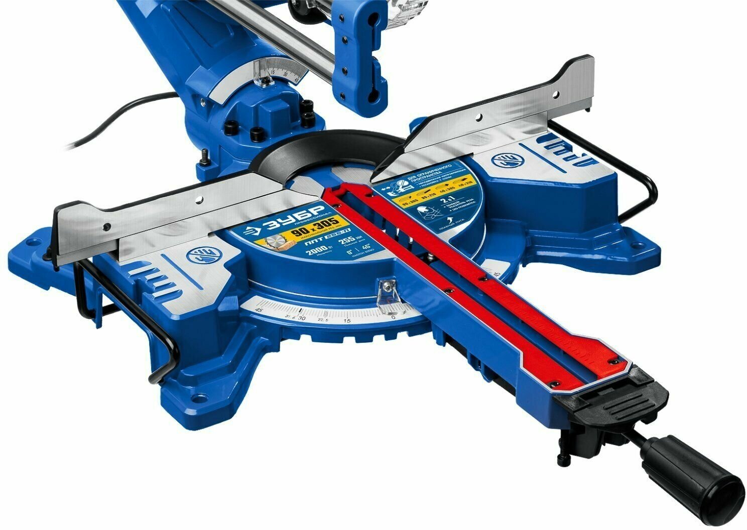 Type: miter saw, blade diameter: 305 mm, Power W: 2000, cutting depth 90°: 105 mm, cutting width 90°: 340 mm, with pull, power supply: from the mains, functions: soft start, cutting depth adjustment, Bevel cutting /cut, Support socket