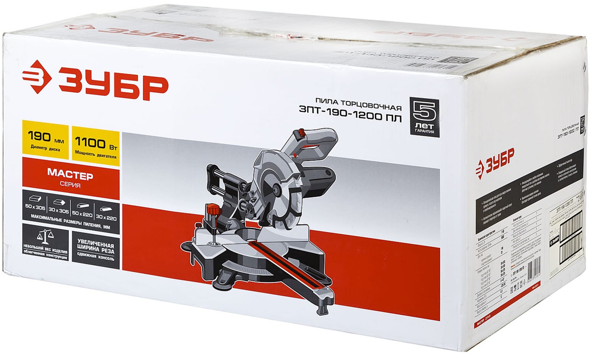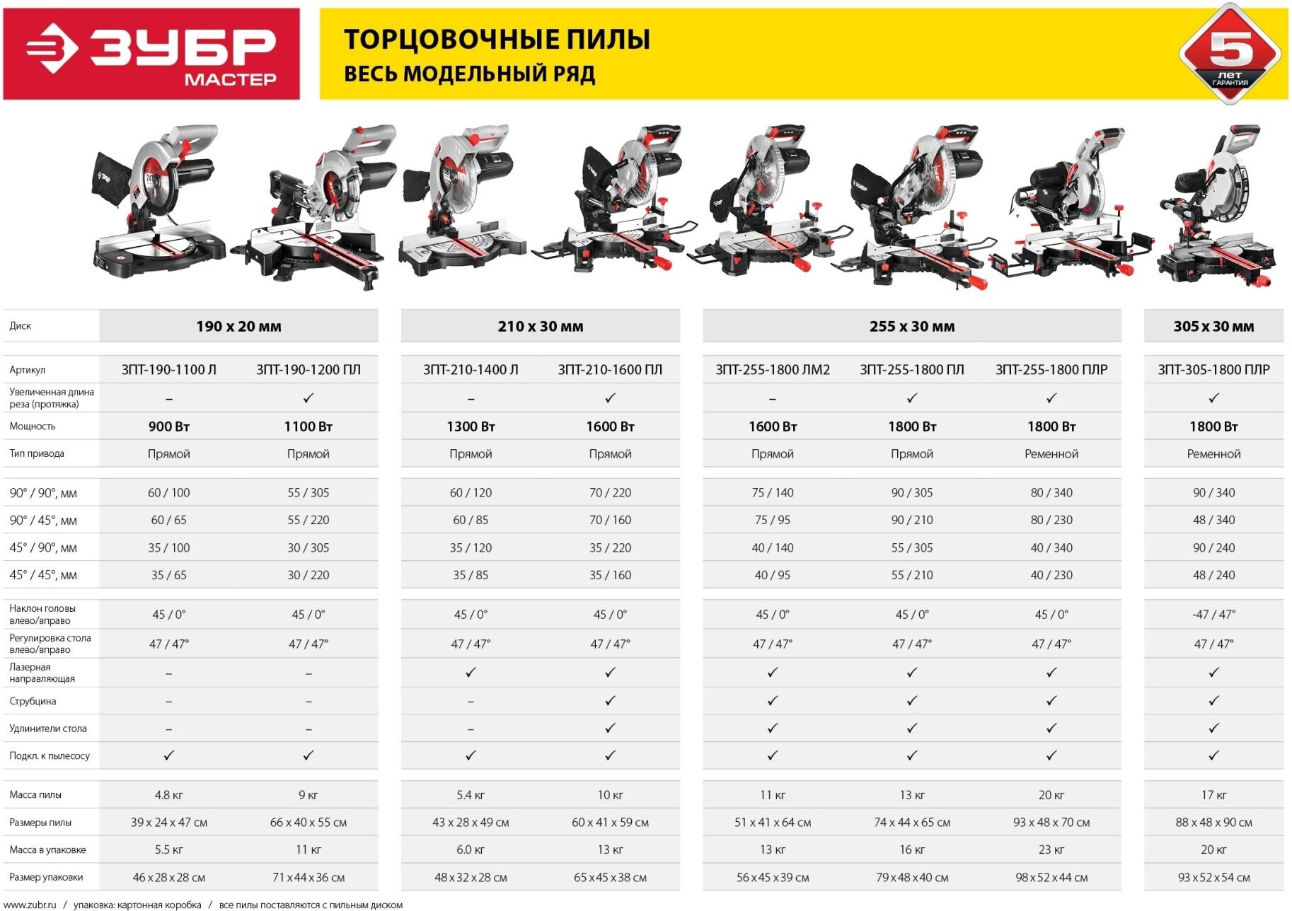 Type: miter saw, laser marker, disc diameter: 216 mm, Power W: 1500, cutting depth 90°: 65 mm, cutting width 90°: 305 mm, with pull, power supply: from the mains, design features: the ability to connect a vacuum cleaner, laser �