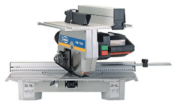 Saw blade, longitudinal guide, pusher, workpiece length limiter, service keys
