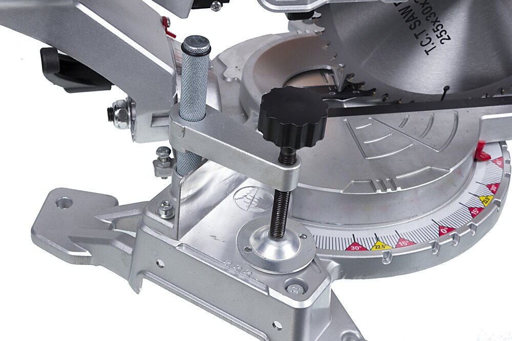Description: Type: miter saw, laser marker, blade diameter: 255 mm, 90° cut depth: 80 mm, 90° cut width: 340 mm, traction, mains powered, functions: cutting depth adjustment, bevel cut/cut, design features : V