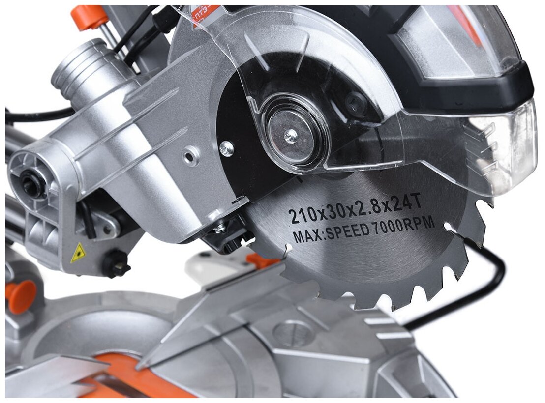 Type: miter saw, disc diameter: 210 mm, Power W: 1800, cutting depth 90°: 75 mm, cutting width 90°: 135 mm, with pull, power supply: from the mains, design features: the ability to connect a vacuum cleaner, number of speeds: 1