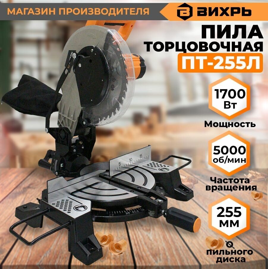 Type: miter saw, laser marker, disc diameter: 255 mm, Power W: 1700, cutting depth 90°: 90 mm, cutting width 90°: 130 mm, power supply: from the mains, functions: Safety lock, Spindle lock, Laser once