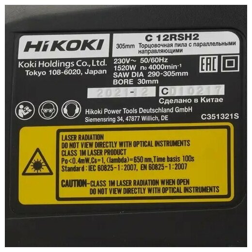 Type: trimming, blade diameter: 305 mm, Power W: 1520, cutting depth 90°: 105 mm, cutting width 90°: 312 mm, with pull, power supply: mains, functions: cutting depth adjustment, design features: laser marker , vacuum cleaner