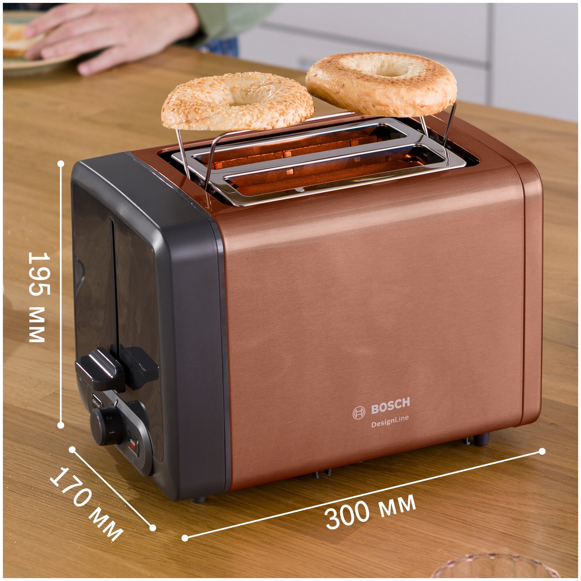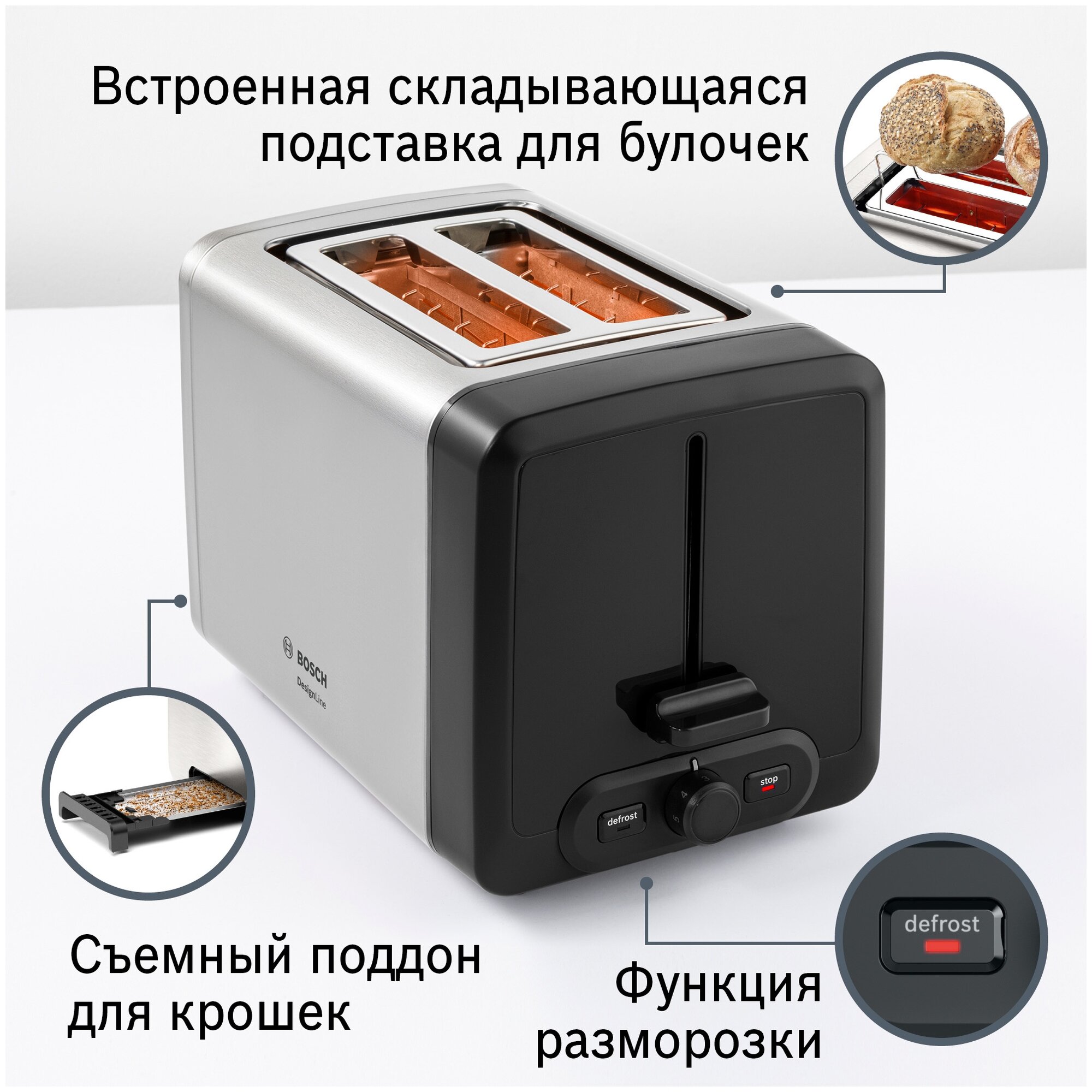Number of toasts: 2, number of compartments: 2, set includes: crumb tray, case material: plastic, control type: mechanical, power: 700 W, features: thermally insulated case, additional functions: button