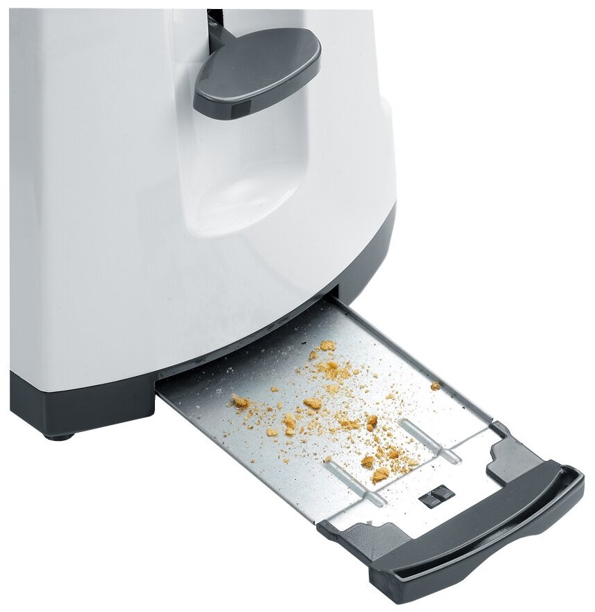 Number of toasts: 2, number of compartments: 2, set includes: crumb tray, case material: plastic, control type: mechanical, power: 700 W, features: thermally insulated case, additional functions: button
