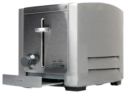 Number of toasts: 2, number of compartments: 2, set: crumb tray, case material: metal, control type: mechanical, additional modes: one-sided frying, defrost function, power: 12