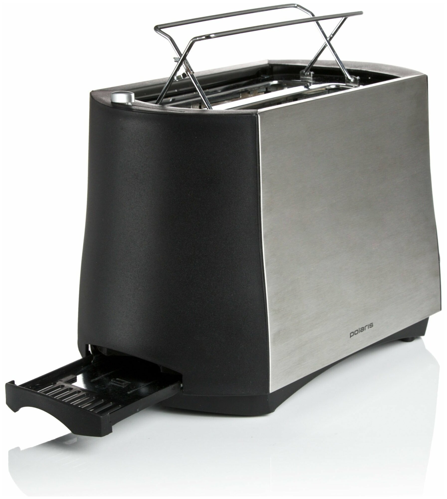 Number of toasts: 2, number of compartments: 2, set includes: crumb tray, bun warmer, body material: metal, control type: mechanical, power: 800 W, height: 23 cm, depth: 19.50 cm, features: