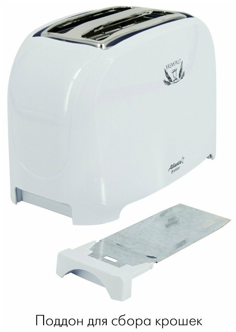 Number of toasts: 2, number of compartments: 2, set: crumb tray, body material: metal, plastic, control type: mechanical, power: 750 W, width: 27 cm, height: 17 cm, depth: 12 cm, features : thermal insulation