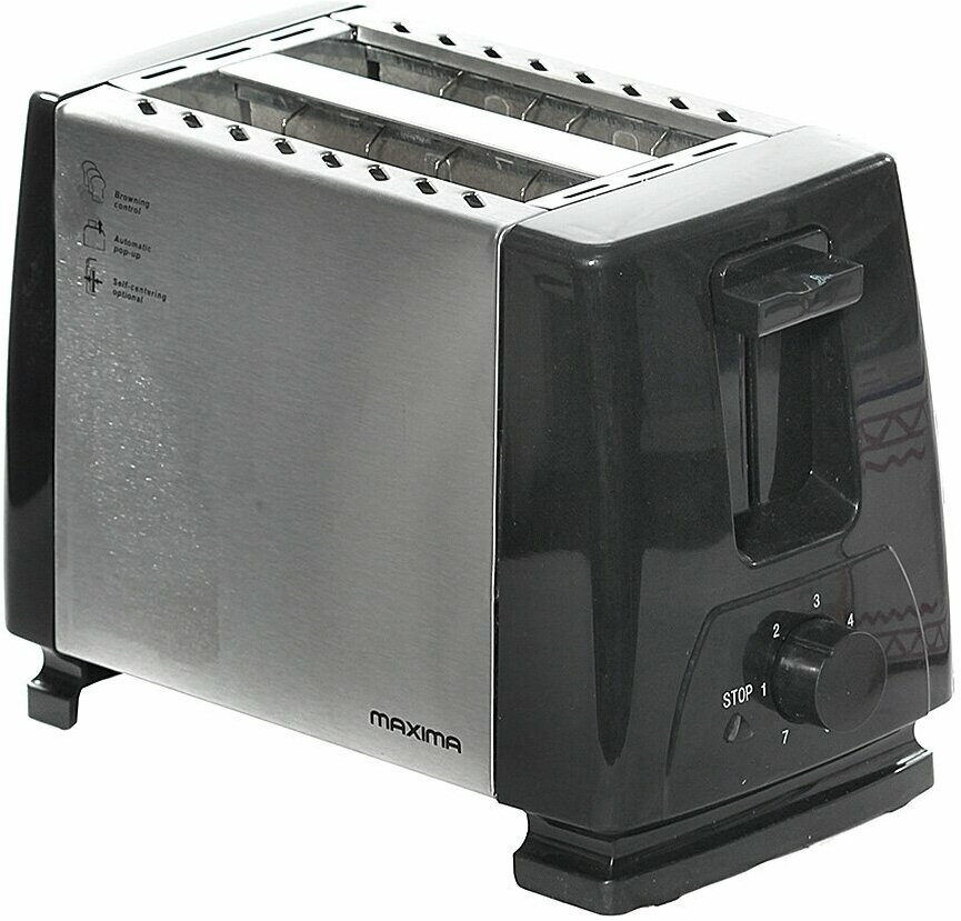 Automatic centering of toasts, stepless temperature control, browning degree adjustment