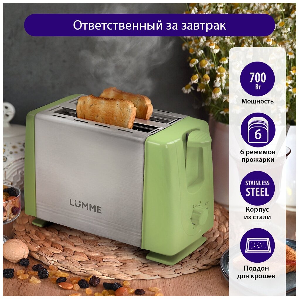 Number of toasts: 2, number of compartments: 2, set: crumb tray, body material: metal, plastic, control type: mechanical, power: 700 W, width: 10 cm, height: 15 cm, depth: 23 cm, features : thermal insulation
