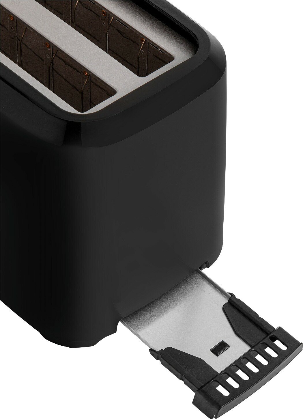 Number of toasts: 2, number of compartments: 2, set includes: crumb tray, case material: plastic, control type: mechanical, power: 700 W, features: thermally insulated case, additional functions: button