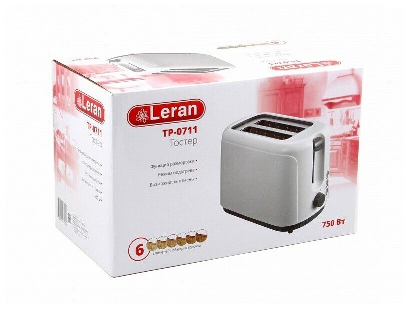 Number of toasts: 2, number of compartments: 2, set includes: crumb tray, case material: plastic, control type: mechanical, additional modes: heating function, defrost function, power: 750 W, high