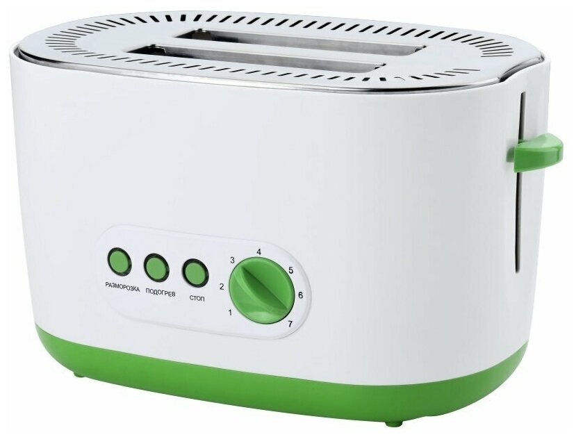 Description: Number of toasts: 2, number of compartments: 2, set: crumb tray, body material: plastic, control type: mechanical, additional modes: heating function, defrost function, power: 930 W, additional