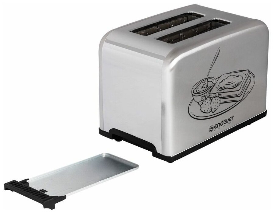 Number of toasts: 2, number of compartments: 2, set includes: crumb tray, case material: plastic, control type: mechanical, power: 700 W, features: thermally insulated case, additional functions: button
