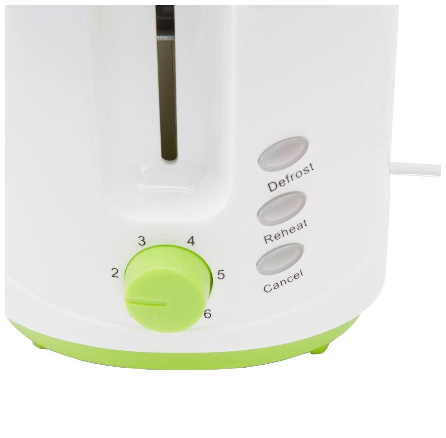 Number of toasts: 2, number of compartments: 2, set includes: crumb tray, body material: plastic, control type: mechanical, additional modes: heating function, defrost function, power: 700 W, high
