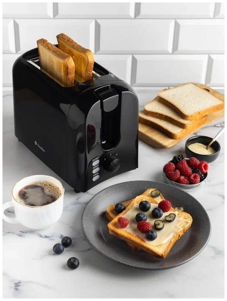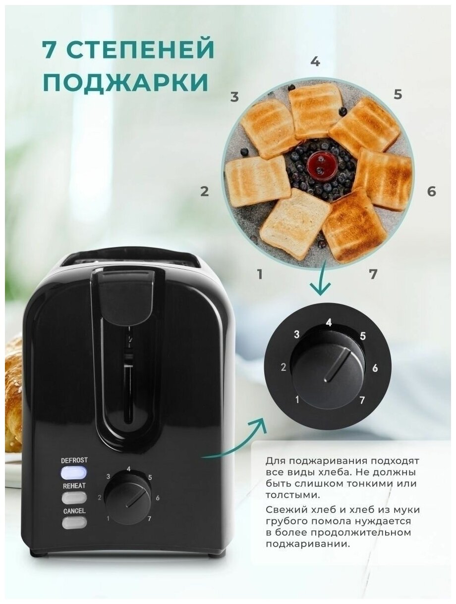 Number of toasts: 2, number of compartments: 2, set includes: crumb tray, case material: plastic, control type: mechanical, additional modes: heating function, defrost function, power: 700 W, extra