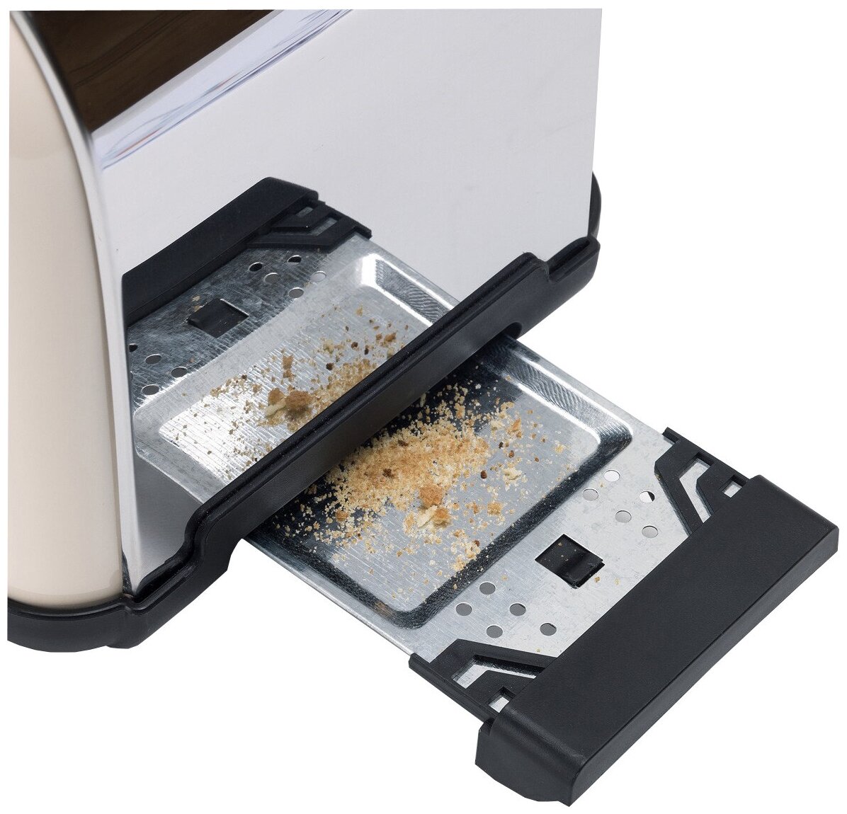 Number of toasts: 2, number of compartments: 2, set includes: crumb tray, case material: plastic, control type: mechanical, power: 700 W, features: thermally insulated case, additional functions: button