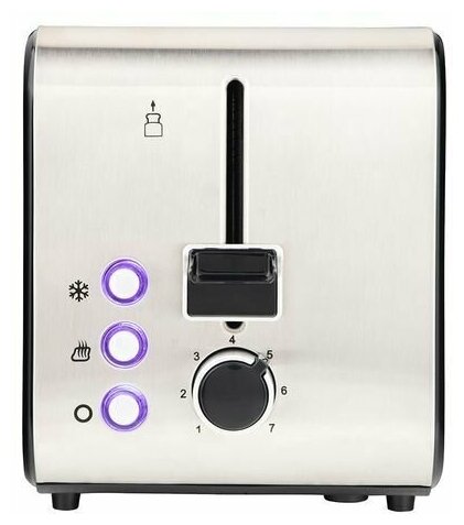 Number of toasts: 2, number of compartments: 2, body material: metal, control type: electronic, additional modes: heating function, defrost function, power: 850 W, width: 20 cm, height: 22 cm, depth: 32 s