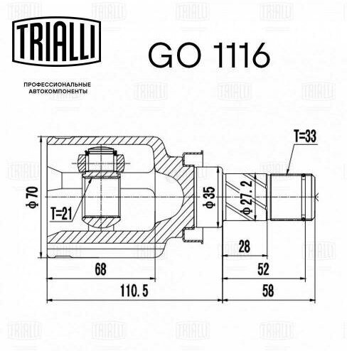 CV joint Int. For A/M Mitsubishi Colt 04- 1.3i Mt Trialli art. GO1116