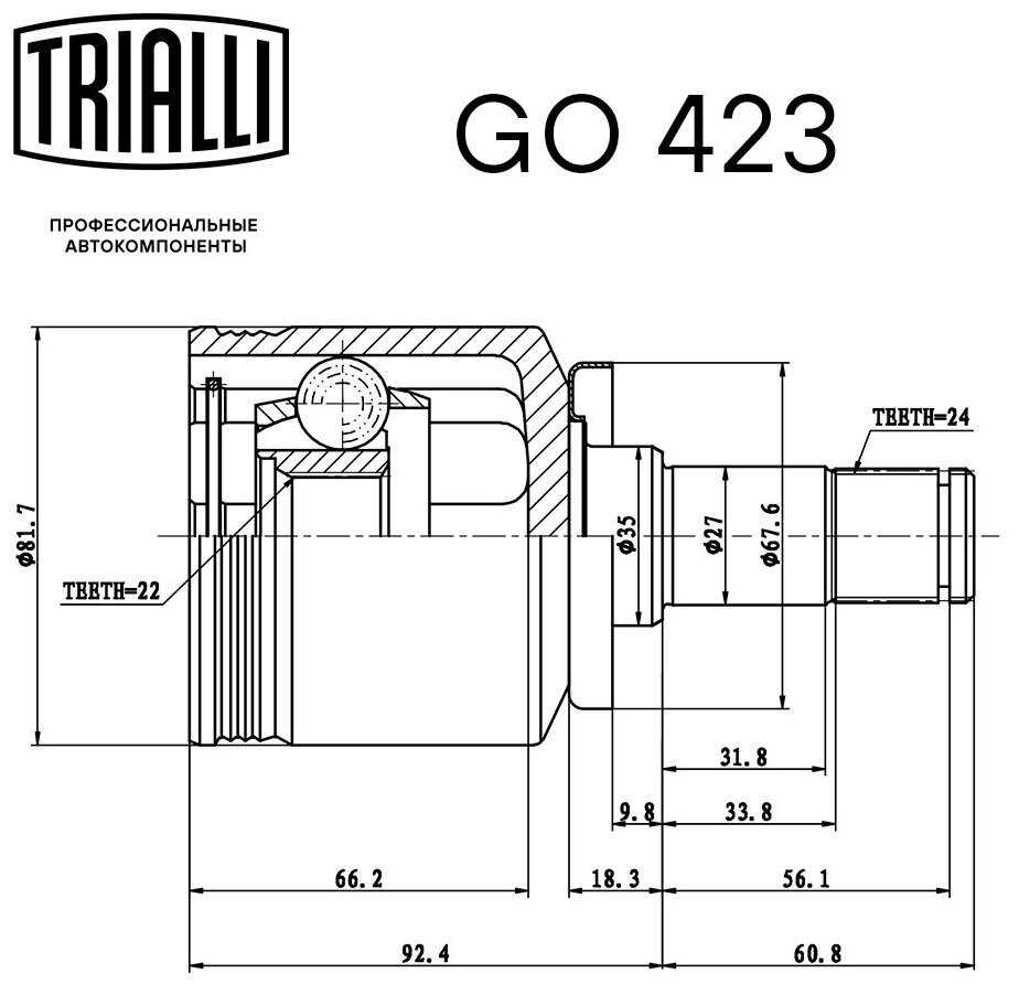 Type: inner CV joint, installation location: front, car model: Datsun mi-DO, Datsun on-DO, LADA 2108, LADA 2109, LADA 21099, LADA 2110, LADA 2112, LADA 2113, LADA 2114, LADA 2115, LADA Granta, LADA Kalina, LADA Priora