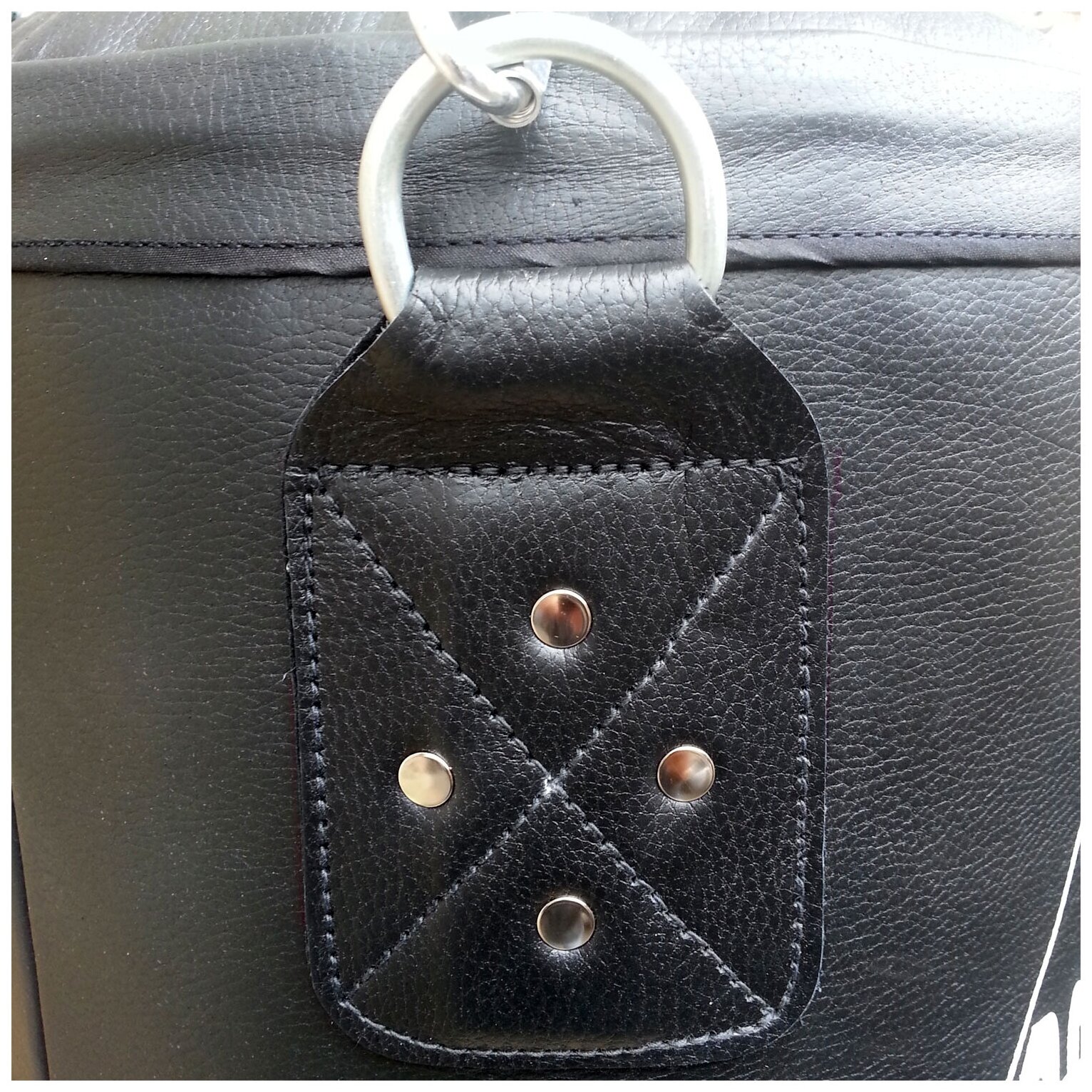 Leather thickness 2.5 mm; the inside of the bag is lined with PVC fabric with a density of 630 g/m2; suspension system made of galvanized chains and carabiners; To attach the bag to the wall or ceiling, brackets are used, not included in the package