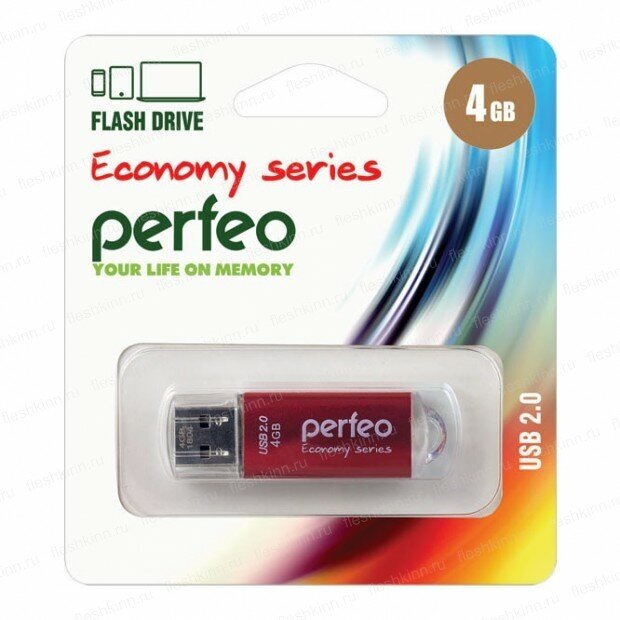 Flash drive USB 2.0 4GB Perfeo E01, red