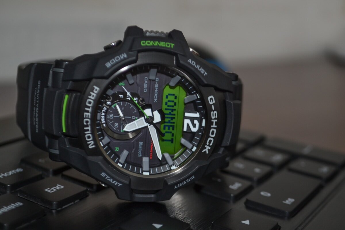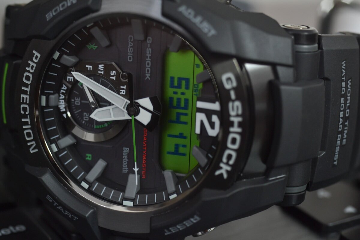 Gender: male, dial: analog + digital, bracelet material: plastic, features: waterproof, power reserve indicator, display backlight, hands backlight, shockproof